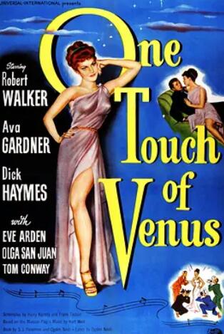 One Touch of Venus (1948) is a film directed by William A. Seiter, starring Robert Walker and Ava Gardner, released by Universal Studios, and based on the Broadway musical of the same name written by Kurt Weill. However, the film omits most of Weill's music and thus got poor reviews.